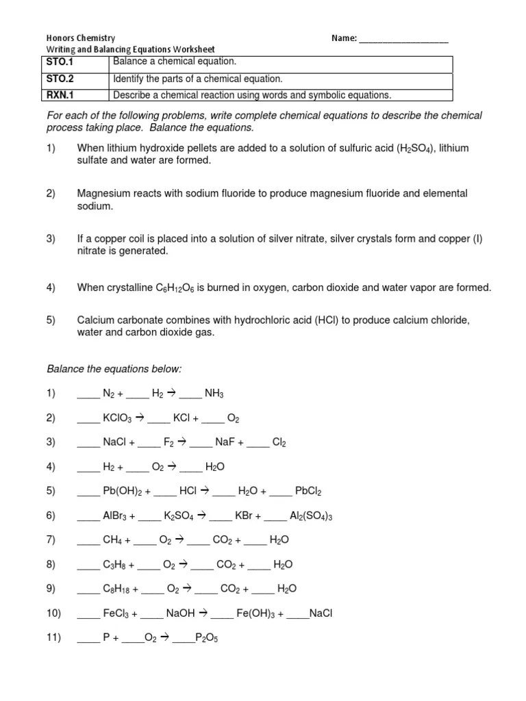 Write and balance chemical equations. Click image to preview the worksheet for this lesson. In this lesson we will learn how to write chemical equations in a way that reflects the law of. A balanced chemical equation gives the number and type of atoms participating in a reaction, the reactants, products, and direction of the . Both of them are separated by an . If you would like to practice, . We must write the chemical formula for each reactant and product. Undergoing a chemical (or physical) change involves writing and balancing a chemical equation. Writing chemical equations for reactions . Solid lithium metal reacts with liquid. 2hgo(s) → 2hg(l) + o2(g). Write the balanced chemical equation between carbon and oxygen to form carbon dioxide. Worksheets and lesson ideas to challenge students aged 11 to 16 to think hard about balancing equations, conservation of mass, writing chemical equations and .